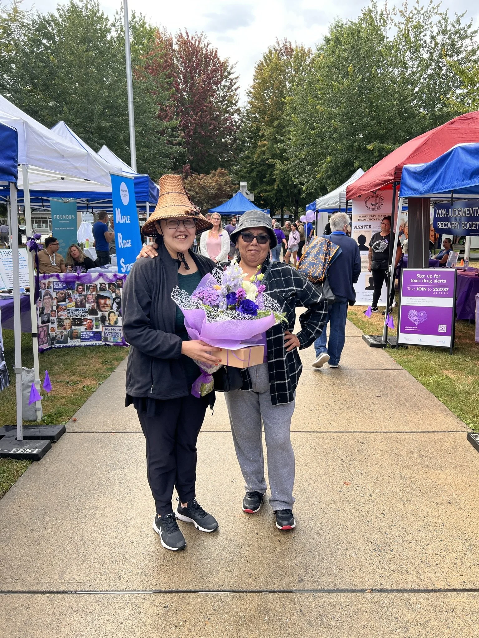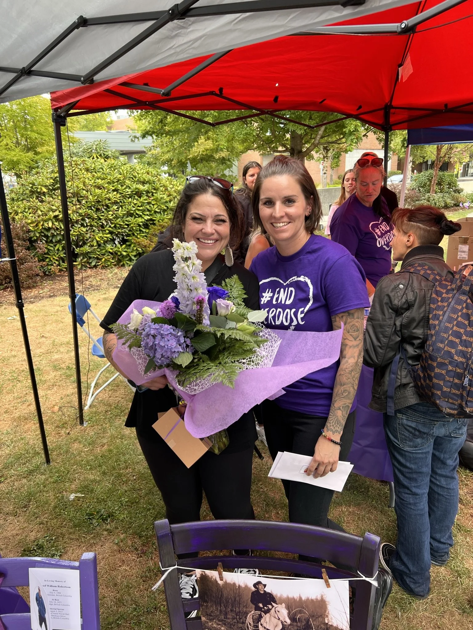 In 2025 we took a different approach to International Overdose Awareness Day. Instead of our typical “farmer’s market style” booth set up- we invited you to come dine with us. We dedicated a portion of our budget to feeding the community and invited our community partners to host tables instead of setting up booths. We booked Tacosaurus and Rolled West Coast to serve up tacos and ice cream and called the community of Maple Ridge and Pitt Meadows to our table. At each dining table there sat one empty purple chair- a reminder of those who are missing from dinner tables in our community. We hosted conversations exploring grief and loss, discussing substance use, harm reduction, mental health needs, and the supports and services available in our area. We are grateful to everyone who came out to dine with us- and hope to see you all and more next year!